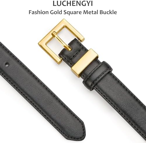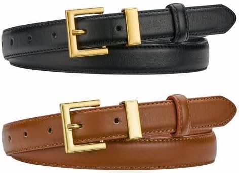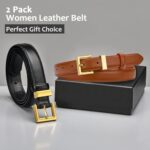 2 Pack Women’s Leather Belt for Jeans Pants Dresses Fashion Ladies Wasit Belt with Square Golden Buckle
