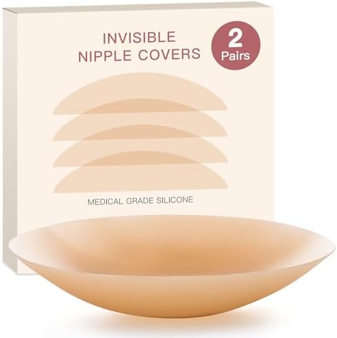 2 Pairs Cakes Body Nipple Covers for Women – Sticky Bra – Reusable Pasties Waterproof with Travel Case,Silicone