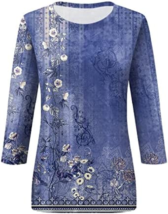 3/4 Length Sleeve Womens Tops Dressy Casual Blouses Summer Fashion Ethnic Graphic Crewneck Tunic Tshirts