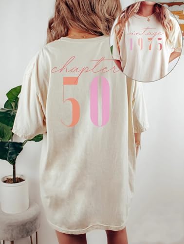 50th Birthday Gift for Women Vintage 1975 Shirt Letter Print Retro Party Tops Casual Short Sleeve Tee