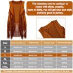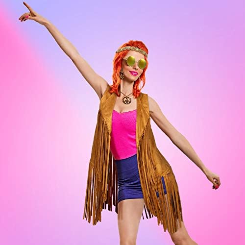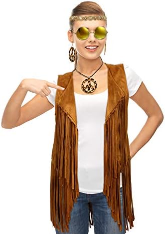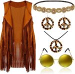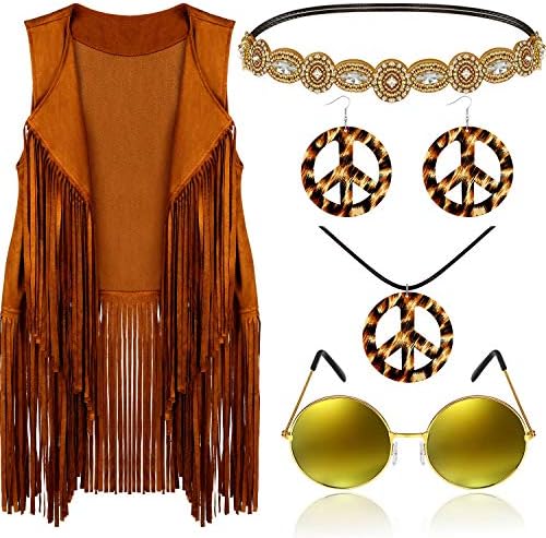 6 Pcs 60s 70s Outfits for Women Hippie Costume Set Peace Sign Earring Headband Fringe Vest Tassel Cardigan