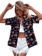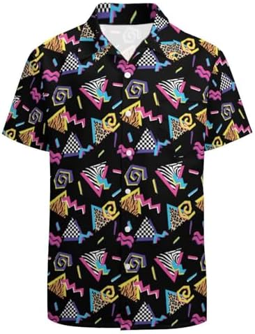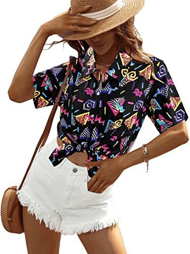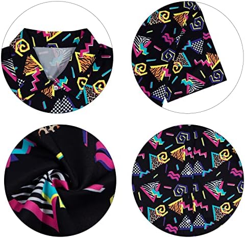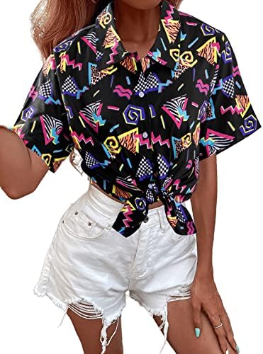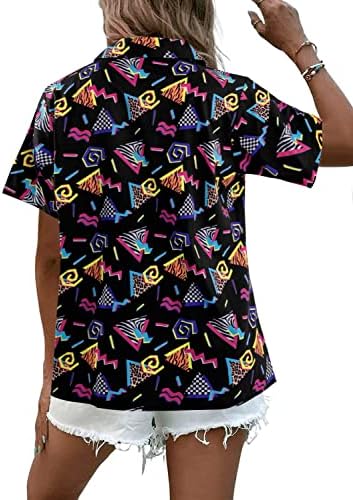 80s 90s Outfits for Women Retro Theme Party Disco Shirt 80s Hawaiian Shirt Neon Button Down Short Sleeve Blouse Tops