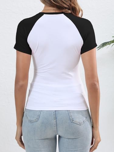 Abardsion Women’s Going Out Tops Y2K Basic Shirts Short Sleeve Crewneck Slim Fit Stretchy Slightly Crop Top