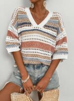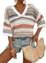 Be the first to review “Acelitt Womens Short Sleeve Crochet Knit Sweater Hollow Out Striped Tops Beach Vacation Cruise Outfits” Cancel reply