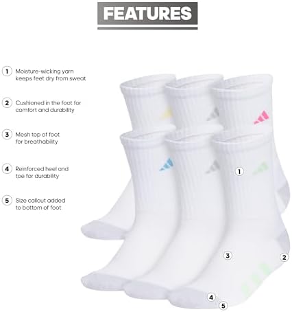 Tags: 6Pack, adidas, Athletic, Breathable, Crew, Cushioned, Durable, girls fashion 10 years, Kids, Socks, Sports, Youth
