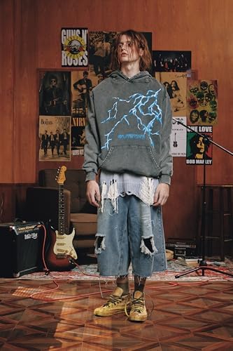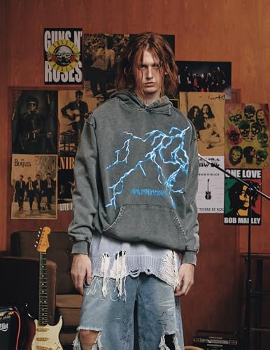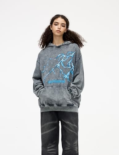 Aelfric Eden Mens Lightning Graphic Hoodies Print Oversized Unisex Streetwear Vintage Hoodie Y2k Sweatshirt Pocket Pullover