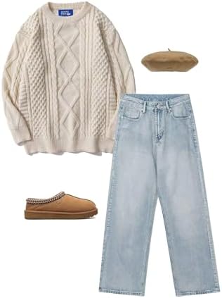Aelfric Eden Oversized Knit Sweater Solid Vintage Pullover Sweater Unisex Woven Crewneck Knitted Tops