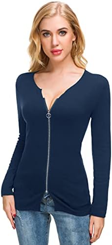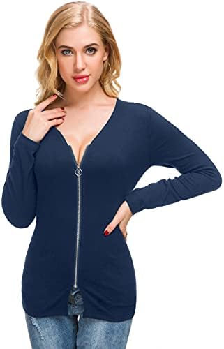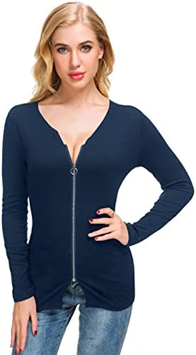 Home Women's Fashion paras Afibi Women V Neck Zip Front Long Sleeve Casual Top Blouse Shirt/Cardigan