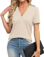 Agnes Urban Womens Tops Dressy Casual V Neck Short Sleeve Shirts Summer Loose T Shirts Trendy Tops Tunic Blouses