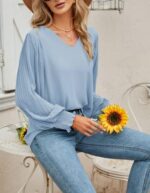 Be the first to review “Aifer Womens V Neck Chiffon Blouses Pleated Lantern Sleeve Flowy Dressy Tops Elegant Business Casual Outfits” Cancel reply