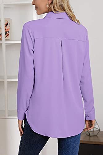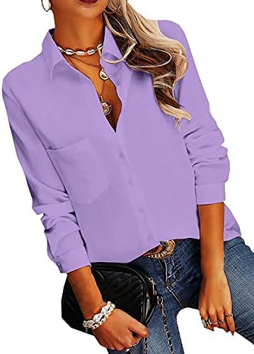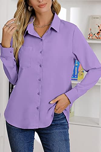 AISEW Womens Casual Button Down Shirts V Neck Chiffon Long/Short Sleeve Collared Office Work Blouses Tops with Pocket