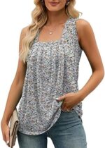 AKEWEI Summer Tank Top for Women Square Neck Sleeveless Tops Flowy Pleated Tunic Loose Fit S-3XL