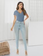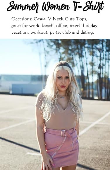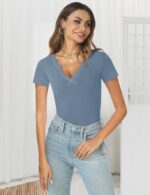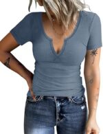 AKEWEI Women’s Short Sleeve Tops Soft V Neck Ribbed Knit Shirts Basic Comfortable Clothes Tunic
