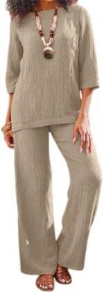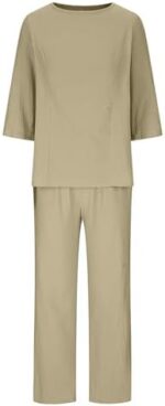Be the first to review “Akivide 2 Piece Outfits Solid Color Loose for Women Linen Sets Summer Casual Suit 3/4 Sleeve Top Wide Leg Pants with Pockets” Cancel reply