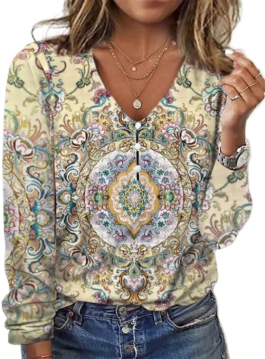 Be the first to review “Akivide Women’s Long Sleeve V Neck Button Dressy Casual Boho Floral Blouse Colorful Ethnic Print Top Shirt Plus Size” Cancel reply