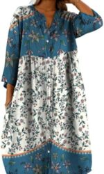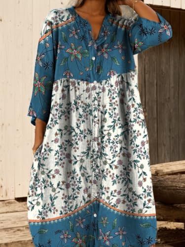 Akivide Women’s Summer Boho Floral Print Button Down Shirt Dress with Pocket Casual Colorful Graphic Long Sleeve Maxi Dresses
