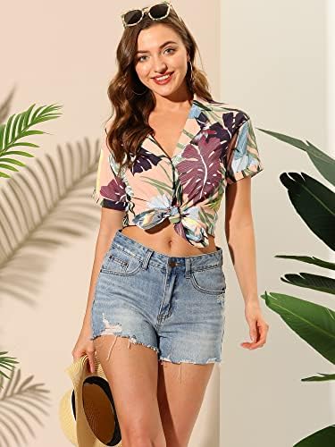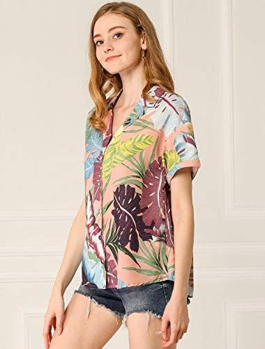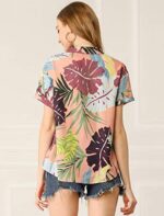 Allegra K Women’s Hawaiian Shirt Floral Leaves Printed Short Sleeve Top Tropical Button Down Shirt Summer Fashion 2024
