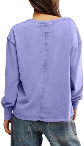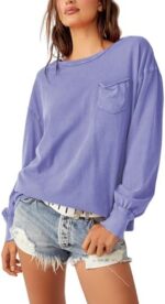 Home Kids’ Fashion Teen Fashion Allimy Women’s Spring Fashion 2025 Crewneck Distressed T Shirts Long Sleeve Tops Pocket Tee