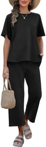 Be the first to review “ANRABESS Women’s 2 Piece Outfits 3/4 Batwing Sleeve Top Wide Leg Crop Pants Sets 2025 Summer Beach Travel Lounge Set Clothes” Cancel reply