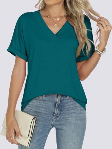 ANRABESS Womens Tops Short Sleeve V Neck T-Shirts Summer Loose Fit Dressy Business Casual Blouse Shirts 2025 Trendy Clothes