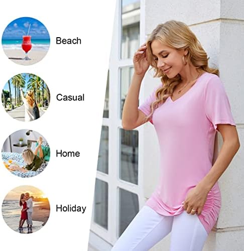 Anydoll Womens Ruched Tops 2025 Spring Summer Tunics Short Sleeve V Neck T Shirts Casual Dressy Tee with Side Shirring