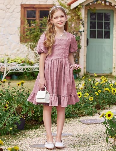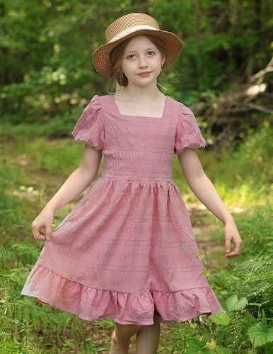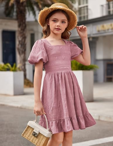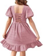 Arshiner Girls Backless Dress Short Sleeve Square Neck Ruffle Hem Elegant Dresses