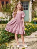 Be the first to review “Arshiner Girls Backless Dress Short Sleeve Square Neck Ruffle Hem Elegant Dresses” Cancel reply