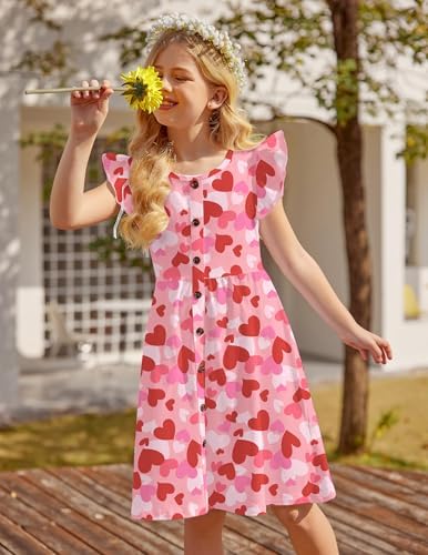 Arshiner Girls Dress Flutter Sleeve A-Line Button Down Sundress Casual Midi Dresses for 4-12 Years Kids