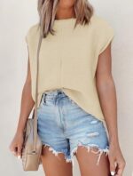 ATHMILE Womens Cap Sleeve Tops Casual Crew Neck Loose Fit Knit Lightweight Sweater Pullover Summer Outfits Fashion Vest