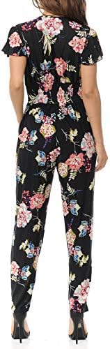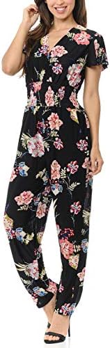 Auliné Collection Womens Short Cap Sleeve V-Neck Long Pants Romper Jumpsuit
