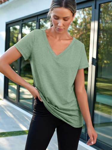 AUTOMET T Shirts Short Sleeve V Neck Tees Tops for Women Fashion Trendy Lightweight Soft Casual Summer Outfits Clothes 2025
