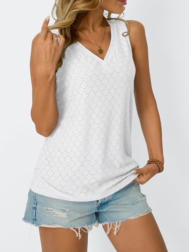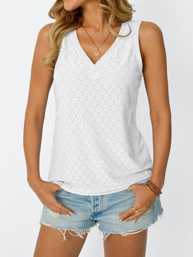 AUTOMET Tank Top for Women Eyelet Embroidery Summer Sleeveless V Neck Flowy Casual Tops Beach Vacation Fashion Boho Shirt