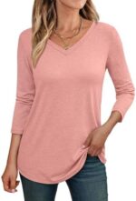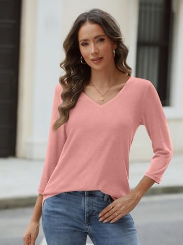 AUTOMET Womens 3/4 Length Sleeve Tops 2025 Summer V Neck Tee Shirts Dressy Casual Work Tunic Blouses Spring Clothes