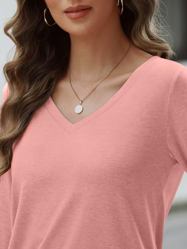 Zeagoo Womens T Shirts Long Sleeve V Neck Basic Tee Soft Casual Loose Fit Fall Tops Outfits 2025