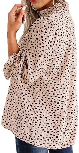 Avanova Women Polka Dot Long Sleeve Blouse Shirts Work Mock Neck Ruffle Top
