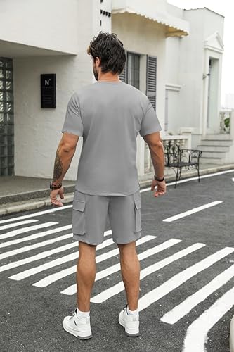 YawYews Men's 2 Piece Outfits Casual Tracksuit Cargo Shorts Summer Athletic Drop Shoulder Sleeve Sportwear Set $36.09