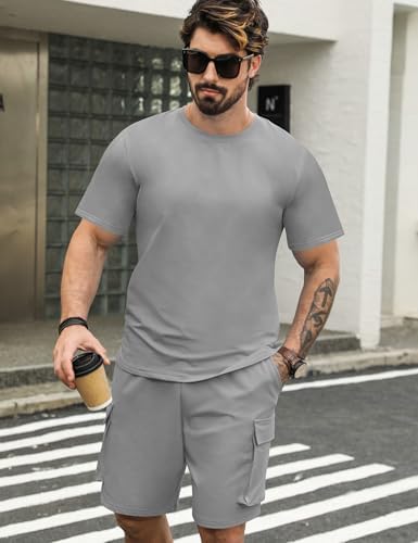Babioboa Men’s Short Sets 2 Piece Outfits Short Sleeve Crewneck Summer T Shirt and Drawstring Casual Track Shorts Set