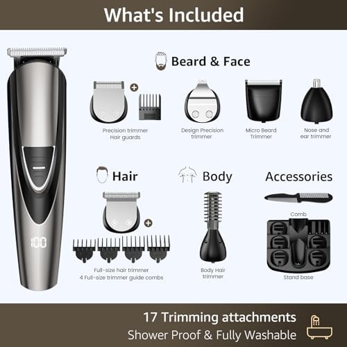 Beard Trimmer for Men SHPAVVER,17-Pc Set Rechargeable Hair Clippers Kit with Safety Lock,Mens Grooming Kit for Hair Beard Body & Nose,Gifts for Men