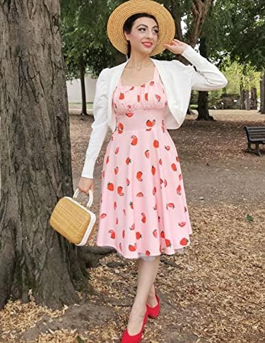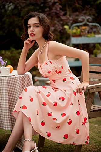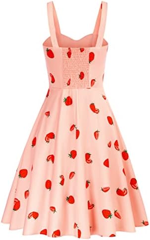 Home Women's Fashion Vintage Belle Poque Women’s Vintage Sleeveless Solid Floral Ruched Summer Cute A-Line Flowy Swing Midi Dress