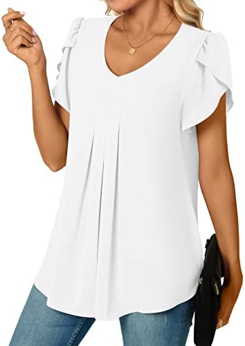 Bestbee Women’s Chiffon Blouses Dressy Casual Tops Summer Tunics V Neck Business Short Sleeve Shirts