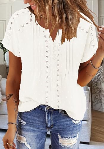 BETTE BOUTIK Women Summer Shirts Short Sleeve V Neck Tops Fashion Casual Blouses