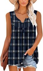 BETTE BOUTIK Womens Sleeveless Tunics Henley Shirts V-Neck Button Down Blouse Tank Tops Casual Pleated Basic
