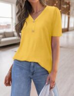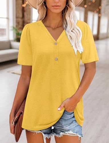 BETTE BOUTIK Womens Summer Shirts Short Sleeve V Neck Tunic Tops Casual Fashion Blouses