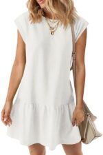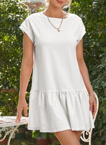 BLENCOT Womens Summer Dresses Casual Cap Sleeve Spring Ruffle Mini Sporty Sweatshirt Trendy Tshirt Dress