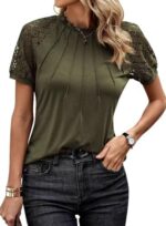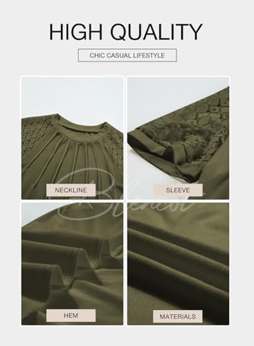 BLENCOT Womens Tops Crewneck Lace Sleeve Fashion Casual Pleated Dressy Blouses Summer Shirts S-2XL