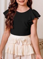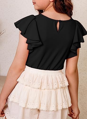Home Kids’ Fashion Girls (3-12 Years) blibean Girl Ruffle Sleeve Shirts Stylish Tops Size 4-16 Years