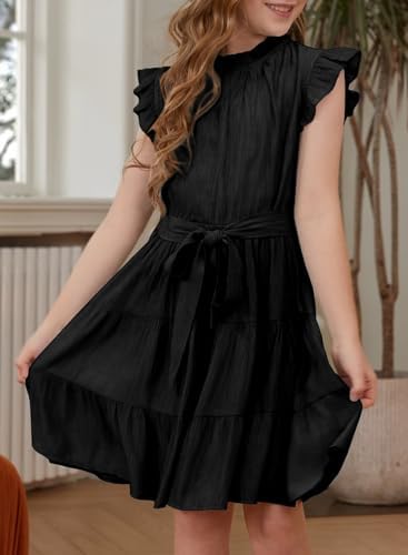 blibean Tween Girls Elegant Dresses Kids Summer Ruffle Sleeve Dress Size 4-15 Years Old