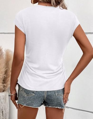 Bliwov Womens Summer Cap Sleeve Tops Solid Business Casual Crewneck Ruched Tee Trendy Basic Outfits Beach Vacation Clothes