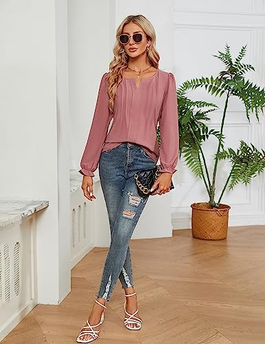 Blooming Jelly Womens Tops Dressy Casual Long Sleeve Shirts V Neck Chiffon Blouses Fall Clothes 2024