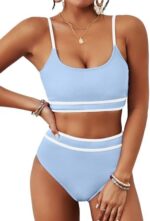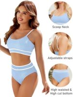 BMJL Women’s High Waisted Bikini Ribbed Two Piece Swimsuit High Cut Color Block Adjustable Straps Bathing Suit